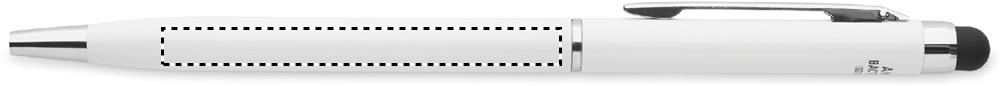 Drehkugelschreiber mit Stylus aus Aluminium. Antibakterieller Schaft. Glänzend verchromter Clip. ISO 22196. Blaue Tinte.