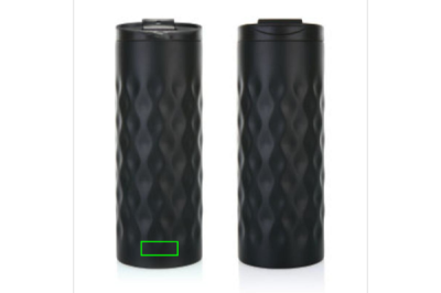Doppelwandiger Becher aus Edelstahl mit trendigem, geometrischem Cut-Design. Inhalt: 350ml. Nur Handwäsche.