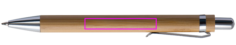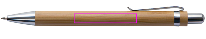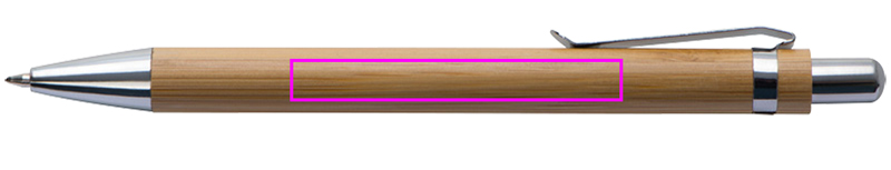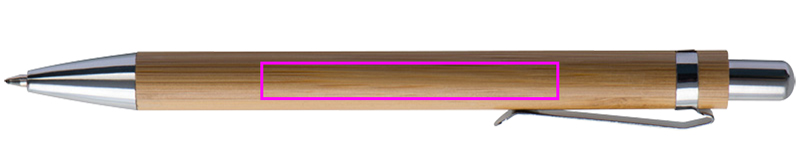 Kugelschreiber aus Bambus mit blauschreibender Großraummine. Die Veredelung erfolgt mittels Lasergravur unterhalb des Clips.