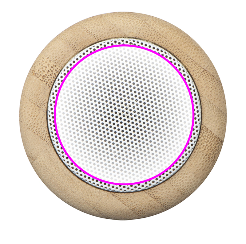 Bluetooth 5.0 speaker made of ABS and bamboo with color-changing LED light, 300 mAh battery, charging time 2 hours and a range of up to 10 meters. Your logo will be placed onto the speaker.