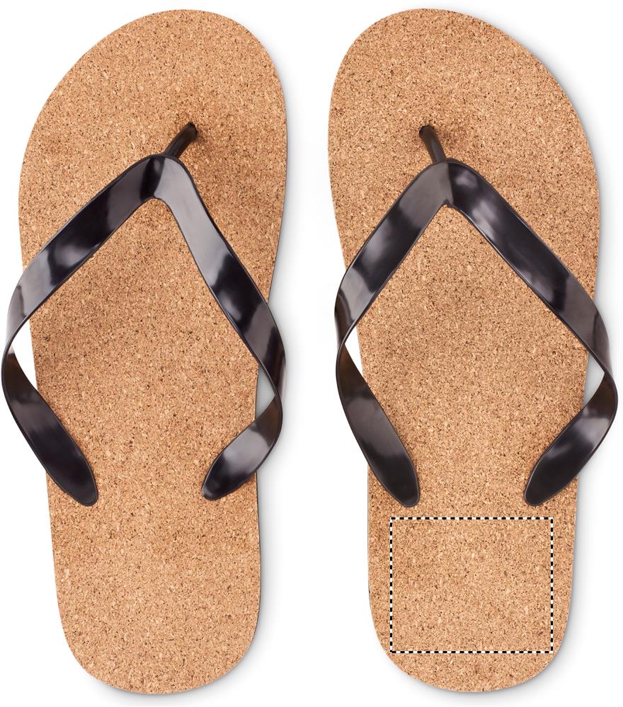 Beach slippers with cork and EVA sole and PVC straps. size M fits 36-39. Cork is a natural material, due to its structural nature and surface porosity the final print result per item may have deviations.