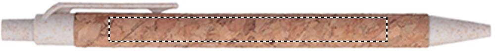 Push button ball pen with cork barrel and wheat straw (50%) and ABS plastic (50%) fittings. Blue ink. Cork is a natural material, due to its structural nature and surface porosity the final print result per item may have deviations.