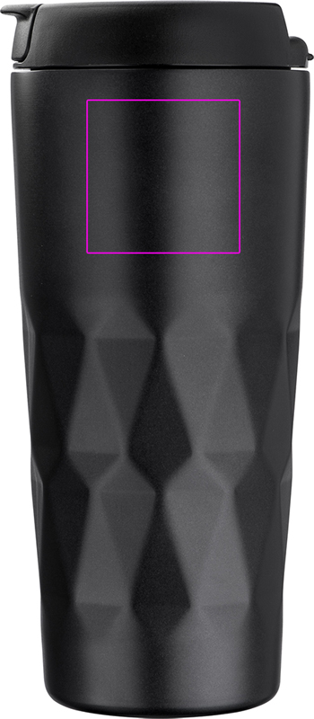 Double-walled, noble stainless steel mug with 500ml capacity; more importantly, leak-proof. Your logo will be engraved.