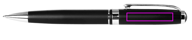 High-quality metal pen in matt black, with shiny silver applications, and elegant case. We will engrave your logo below the clip.