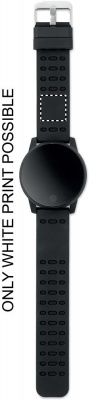 4.0 wireless Low-Energy sports smart watch with silicone strap. Rechargeable Li-Pol 180 mAh battery. IPX7 waterproof. Requires a free app (wearfit available in both iOS and Android.