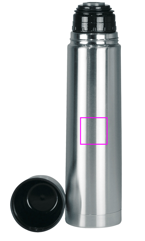 The huge one! This isolating flask is just the right size - its 1l capacity is ideal for journeys with a couple of people. A double wall stainless steel isolating flask with snap closure and drinking cup. The ideal present on which your logo will be laser engraved on the flask. Each flask is packed in a single cardboard box.