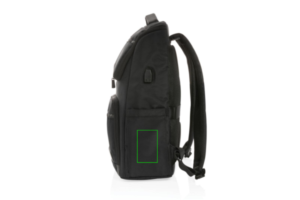 Make the daily commute a little bit easier and a lot more stylish with this laptop backpack. The bag is made from durable 1680D recycled polyester fabric with rich PU details and features a well designed shape with multiple pockets for storage and organisation. In addition to the roomy main compartment, this backpack features a padded 15.6" laptop pocket and an additonal zipper pocket to hold your other daily essentials. Other features of this backpack include a USB output, RFID pockets, pen loops, a detachable luggage tag and a side water bottle pocket. Exterior: 100% 1680D polyester / Lining: 150D recycled polyester. With AWARE™ tracer that validates the genuine use of recycled materials. Each bag has reused 49.92 0.5L PET bottles. 2% of proceeds of each product sold containing AWARE™ will be donated to Water.org.