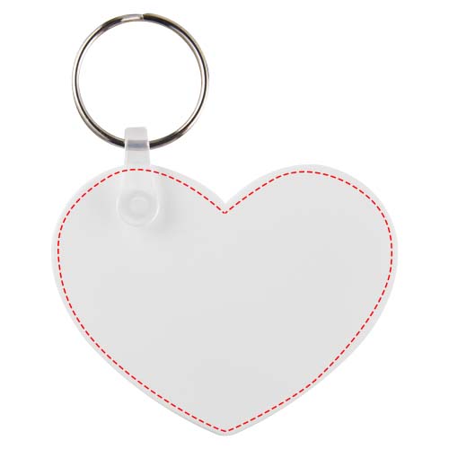 White heart-shaped keychain with metal split keyring. The metal looped ring offers a flat profile which is ideal for mailings.