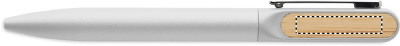 Twist ballpen with recycled aluminium barrel, recycled ABS twist part, and metal clip with bamboo detail. Blue ink.