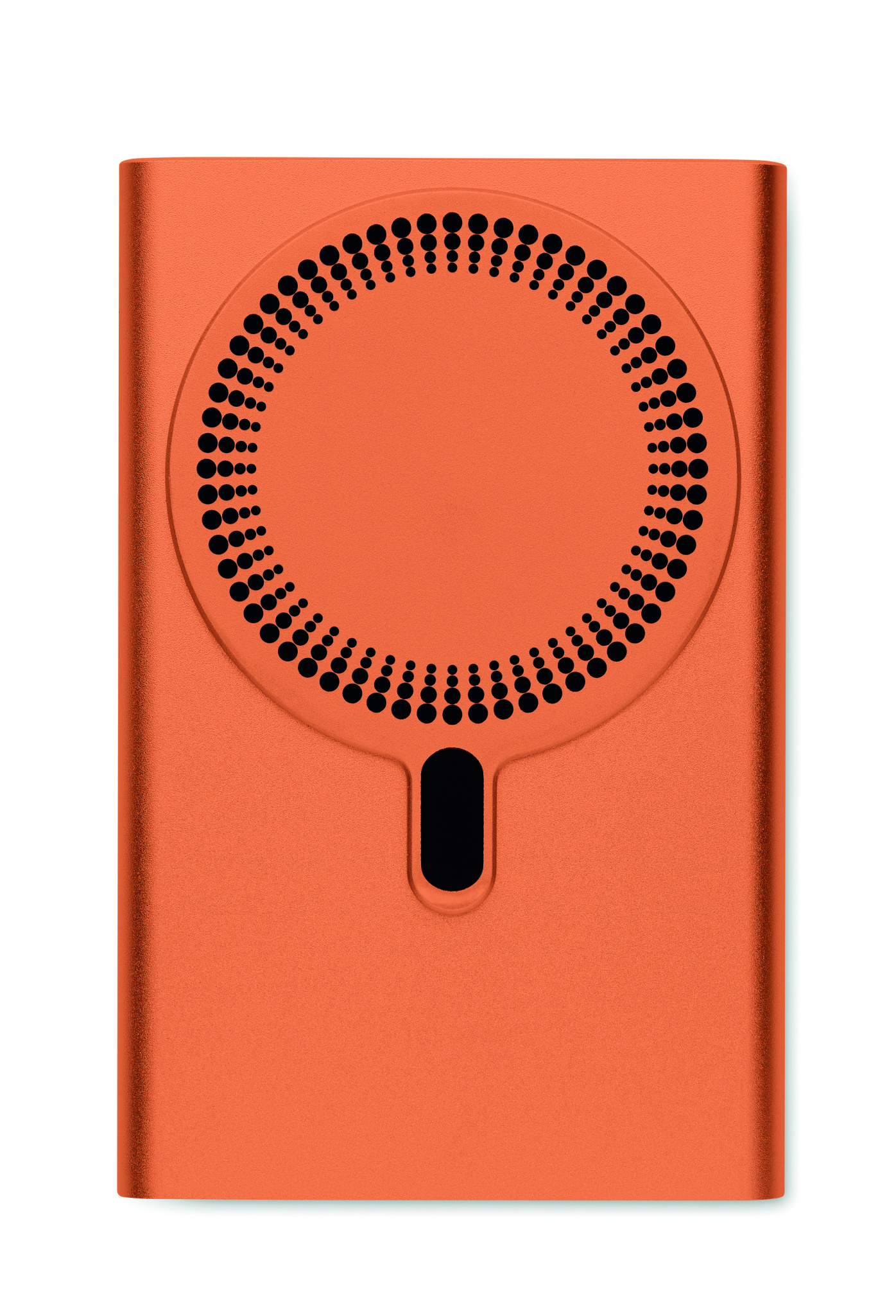 Magnetic wireless charger (15W) in recycled aluminium and power bank (5000 mAh). Output: DC 9V/1.66A. Supports quick charging technology (20W). In/Output: Type-C. Power delivery (PD) support to charge the newest laptop MacPro®. In/Output: Type-C.