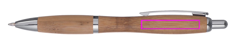 Bamboo ballpen with blue-writing refill. We engrave your logo below the clip.
