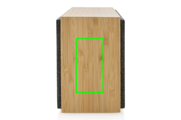 Luxury and powerful 20W speaker with clear sound and strong bass. The outer casing is made from FSC 100% certified bamboo. The plastic components are made with RCS (Recycled Claim Standard) certified recycled ABS. Total recycled content: 17 % based on total item weight. RCS certification ensures a completely certified supply chain of the recycled materials. The speaker comes with BT 5.1 for easy and smooth operation up to 10 metres and low power consumption. The 1200 mah battery allows a playtime up to 6 hours and can be fully re-charged in 3 hours. With pick up function and mic to answer (video) calls. Packed in FSC mix kraft box. Including RCS certified recycled TPE charging cable.