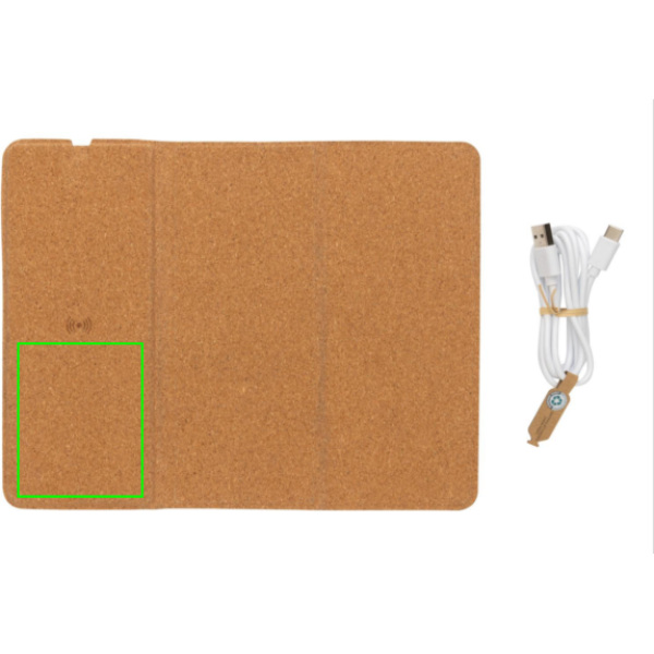 Juhtmeta 10 W laaditav hiirepadi täieliku FSC 100% korgist välispinnaga. Saab kasutada nii hiirematina kui ka telefonialusena. Juhtmeta laadimine ühildub kõigi QI-toega seadmetega, nagu uusima põlvkonna Android, iPhone 8 ja uuemad. Kaasa arvatud 120 cm C-tüüpi laadimiskaabel, mis on valmistatud RCS-sertifikaadiga taaskasutatud TPE-st. Pakitud FSC® mix kraft kinkekarpi. Type-C in; 9V/2A; Juhtmeta väljund 9V/1,1A (10W)