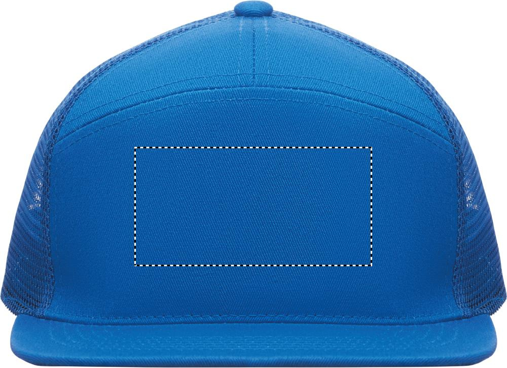 7-paneeliga lameda visiiriga nokamüts puuvillasest twill-kangast (235 g/m²), polüestervõrgust tagaküljel ja plastkinnisega.