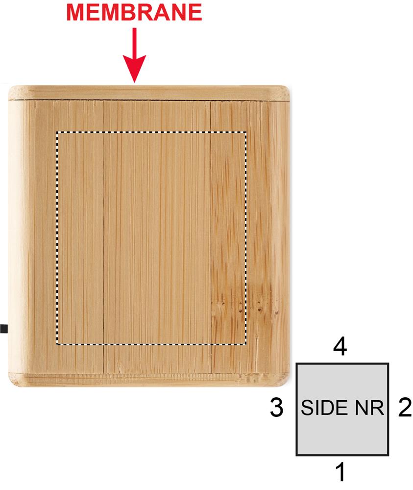 5.0 juhtmevaba kõlar bambusest korpusega ja LED-tule indikaatoriga. Kaasas 1 taaslaetav liitiumaku 500 mAh. Väljundandmed: 3W, 3 Ohm ja 5V. Mänguaeg ca. 4 tundi (70% mahust). Bambus on looduslik toode, ühe eseme värvis ja suuruses võib esineda väikesi erinevusi, mis võivad mõjutada lõppviimistlust.