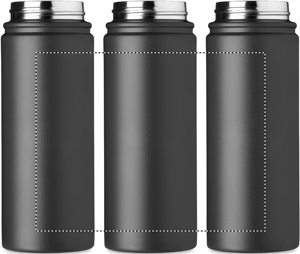 Kahekordse seinaga roostevabast terasest vaakumisolatsiooniga pudel kaanel oleva korgi ja kandesangaga. Mahutavus: 500 ml.