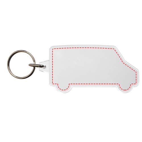 Läbipaistev kaubikukujuline võtmehoidja metallist poolitatud võtmehoidjaga. Metallist silmusrõngas pakub lamedat profiili, mis sobib ideaalselt postitamiseks. Trükilehe mõõdud: 6,9 cm x 2,9 cm.