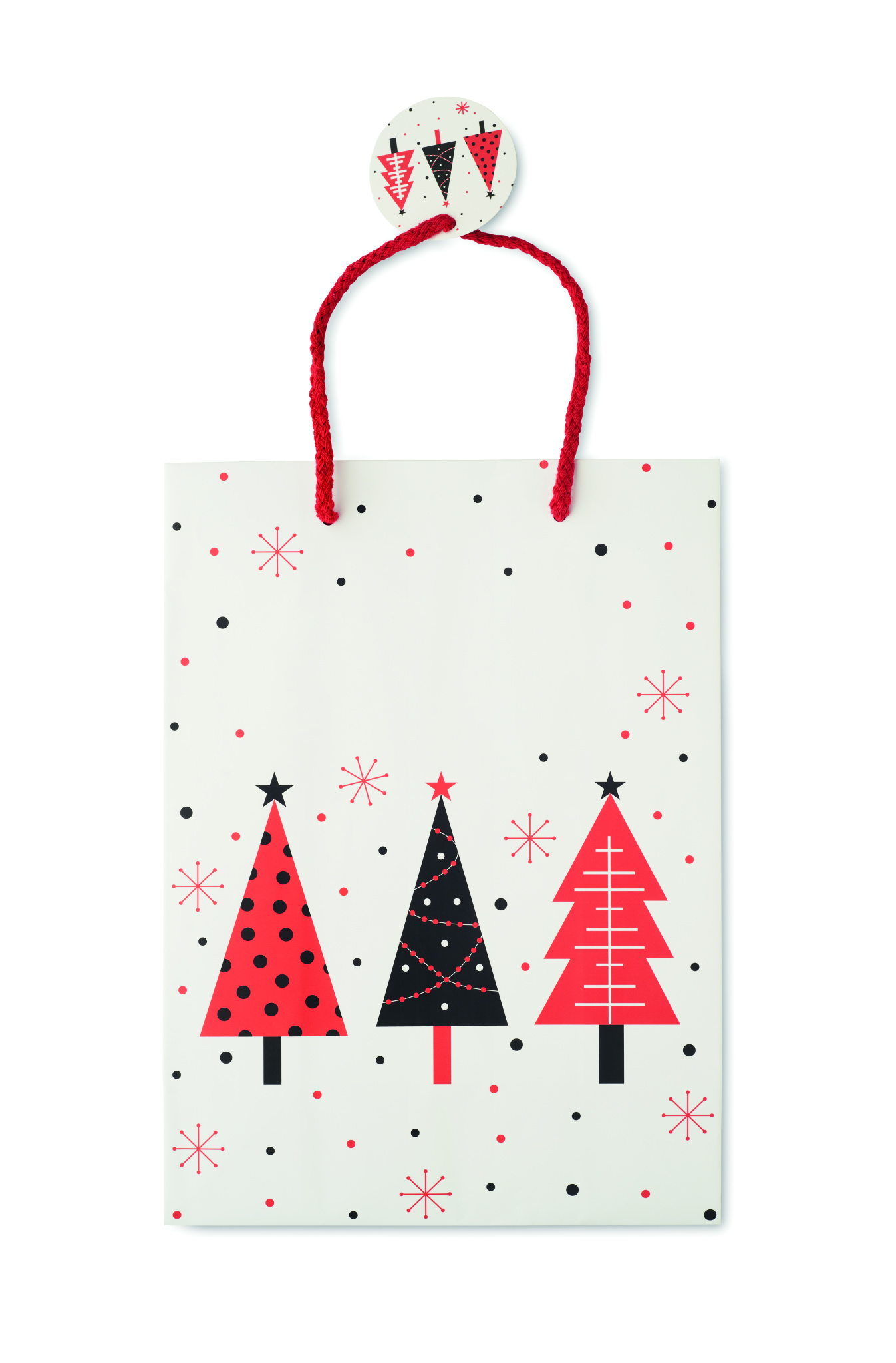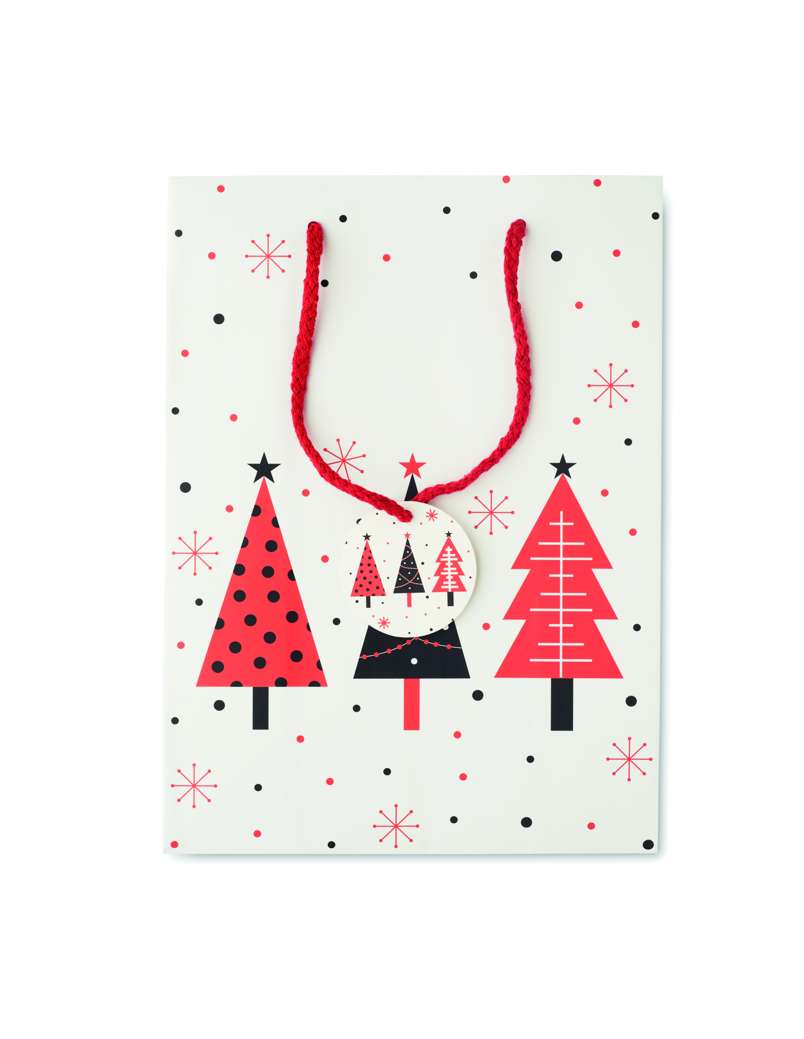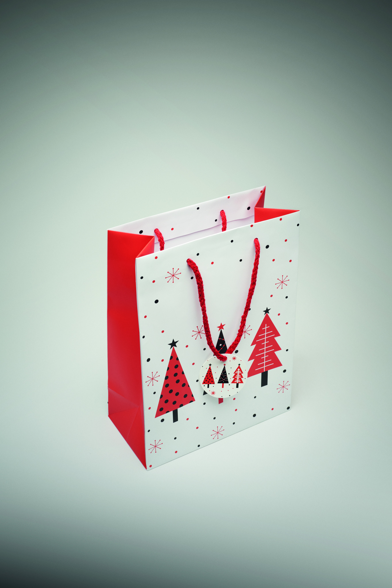Jõuludeks mõeldud keskmise suurusega kinkekott (30% taaskasutatud) koos sildiga. 150 g/m². FSC®-sertifitseeritud | FSC MIX, W5.3, FSC-C213206