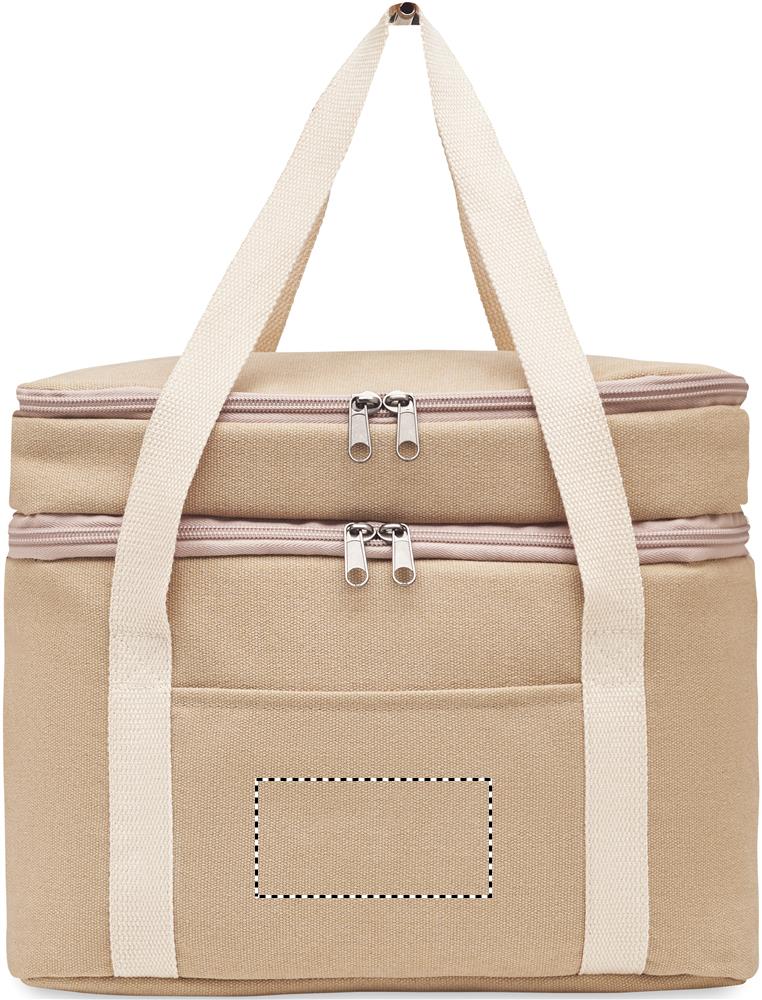 Kahe sektsiooniga pestud lõuendist jahutuskott puuvillase rihmaga. 320 gr/m². Isolatsioon: 15C PEVA 6mm PE vahuga.