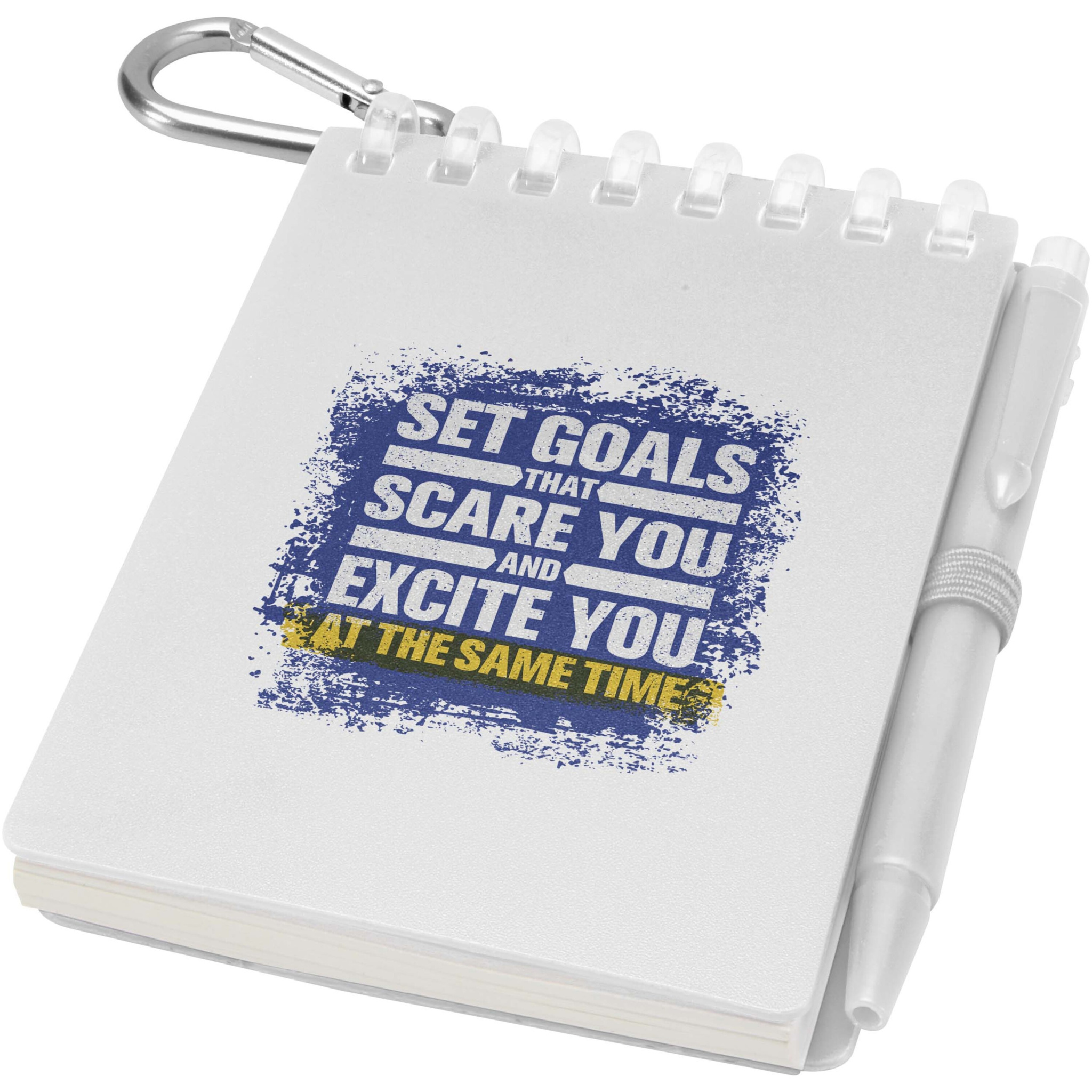 Spiraalköites märkmikul on pehmest taaskasutatud plastist kaas ja 70 tühja lehte 120 g/m² veekindlast kivipaberist, mis teeb selle ideaalseks välitingimustes kasutamiseks. Ümarate nurkade ja  pliiatsiaasaga. Sobiv pastapliiats on valmistatud taaskasutatud ABS-plastist, kirjutab musta tindiga ja pakub 250 meetrit kirjutusulatust. Märkmiku suurus: 11 × 7,5 cm.