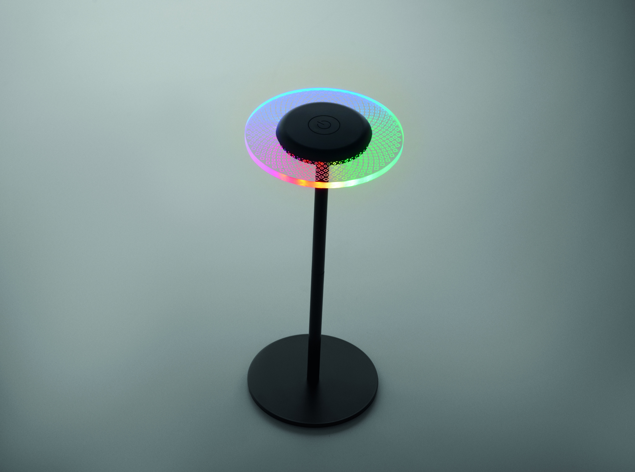 Laetav RGB laualamp rauast korpusega 39 LED-tulega ja astmevaba hämardusega. Sooja või värvimuutva valguse valikuga. Sisseehitatud 2000 mAh aku kestab kuni 6 tundi.