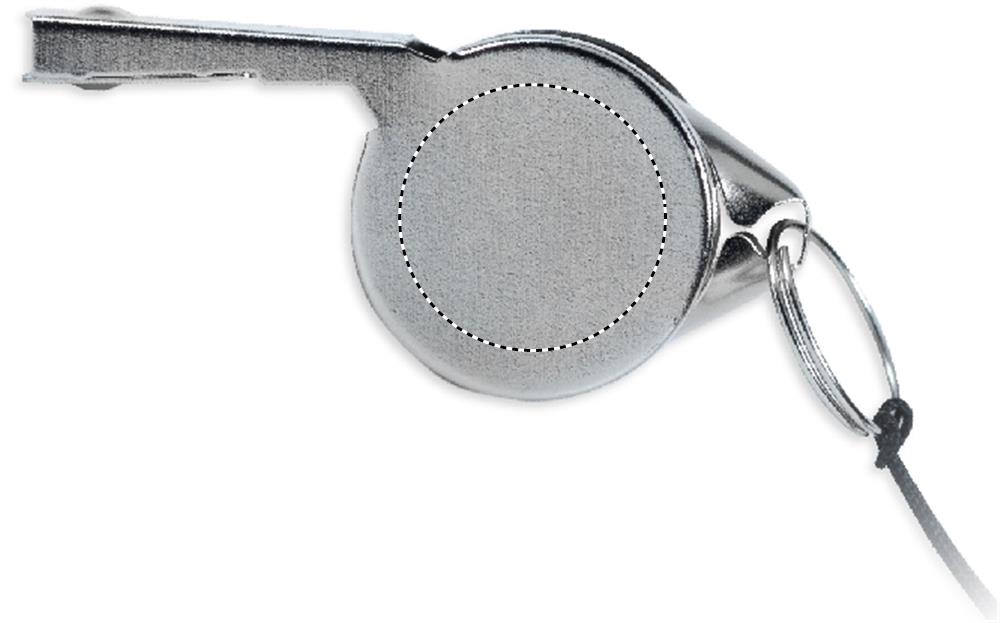 Turvapandlaga kaelapaela külge kinnitatud metallist vile.