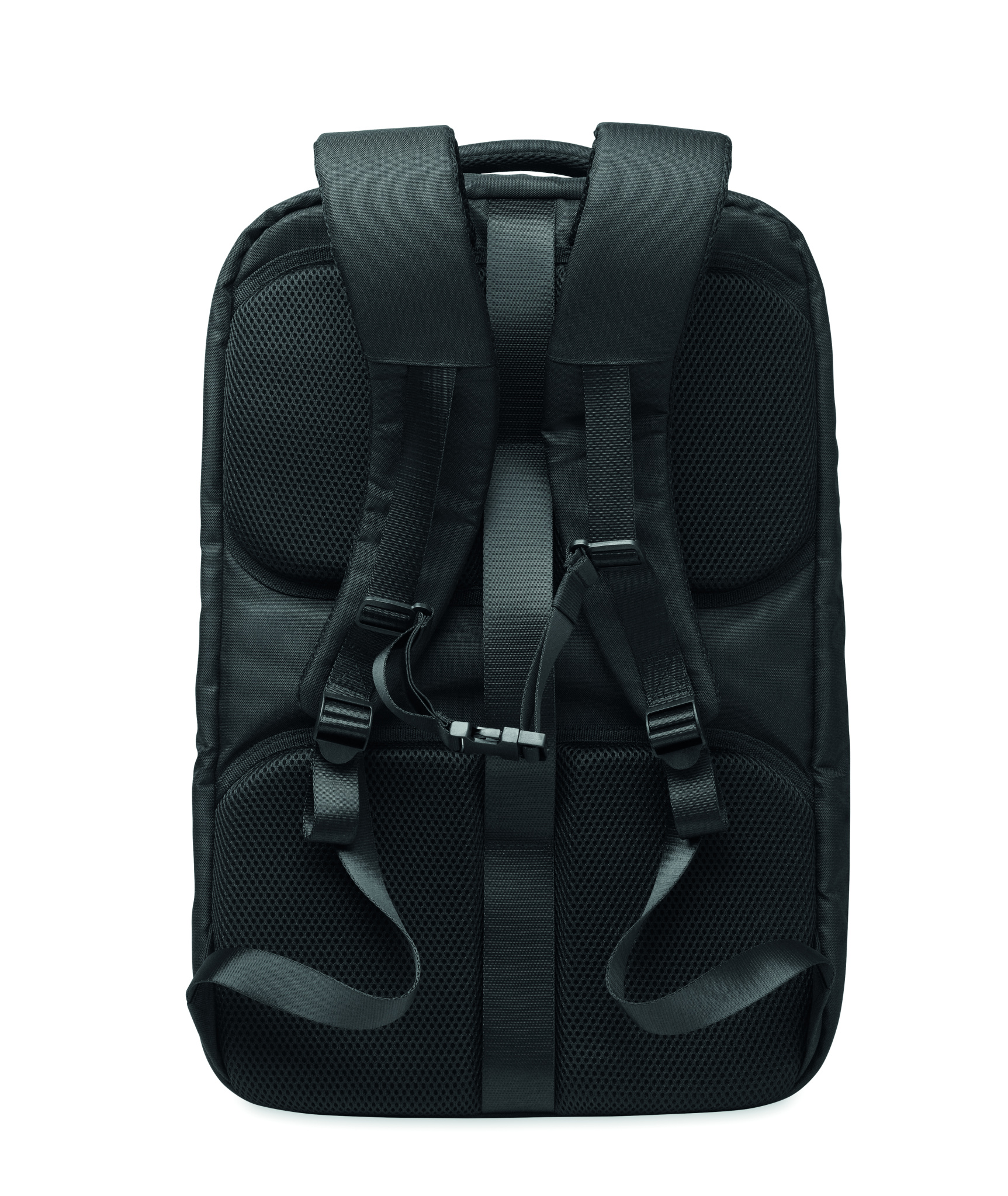 Suur 17-tolline sülearvuti seljakott 600D RPET polüestrist. Polsterdatud tagapaneel, õlarihm ja käepide.