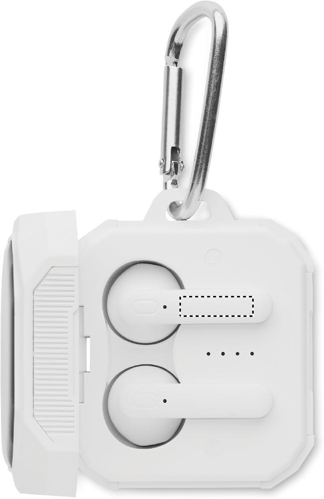 ABS True Wireless Stereo (TWS) 5.3 juhtmevabad kõrvaklapid mikrofoni ja karabiiniga. 30 mAh aku. Mänguaeg ca. 4 tundi. Sellel on päikeseenergia laadimise aku. Automaatne sidumine. Kaasas C-tüüpi laadimiskaabel ja 200 mAh laadimisjaam.