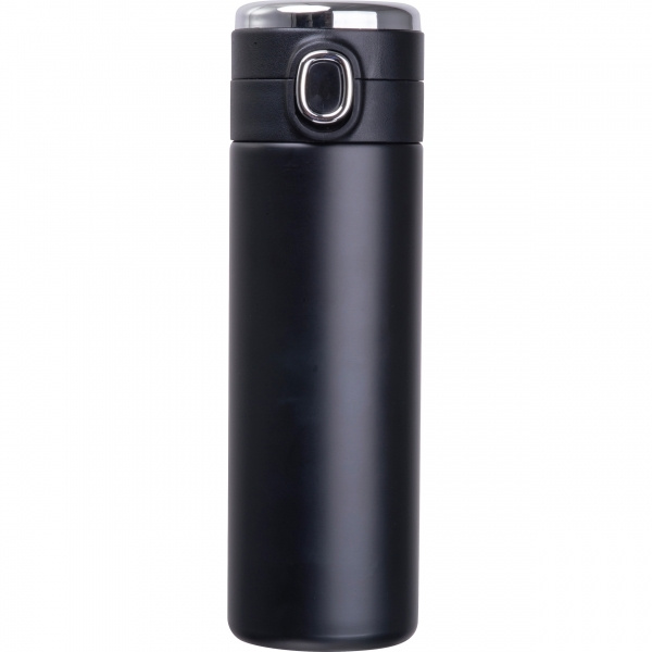 Vaakumisolatsiooniga roostevabast terasest pudel, millel on korgi sees temperatuurinäidik ja turvalukk. Maksimaalse temperatuuri näidik: 99 °C.