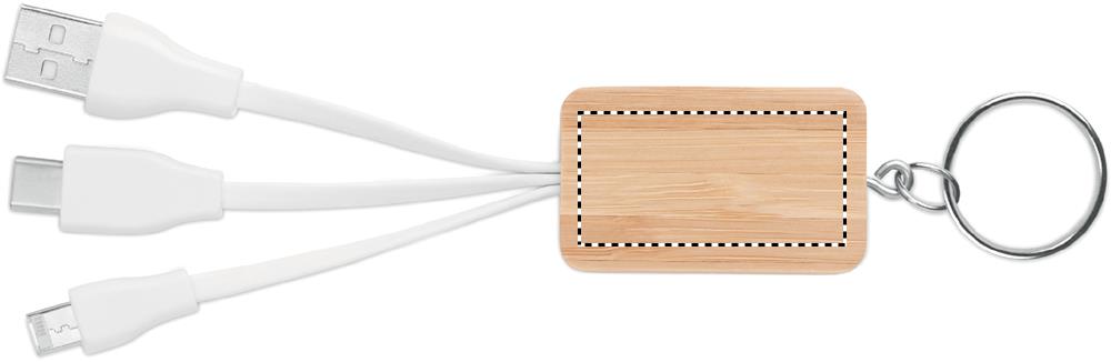 Avaimenperä bambu pinnalla ja latauskaapelilla, USB-A, mikro-B (2 in 1) ja C tyypin. Luonnollisen materiaalin (bambu) vuoksi, tuotteiden värissä/ koossa saattaa olla erinäisyyksiä ja tämä voi vaikuttaa painatuksen lopputulokseen.