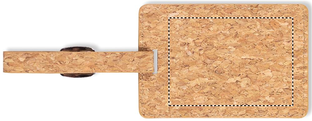 Korkki matkatavaramerkki. Sisältää paperin ''täytä'' tiedot läpinäkyvillä kortti. Korkki on luonnonmateriaali, strukturaalinen laatu ja pinnan huokoisuus voi aiheuttaa eroavaisuuksia tuotteissa painatuksen jälkeen.