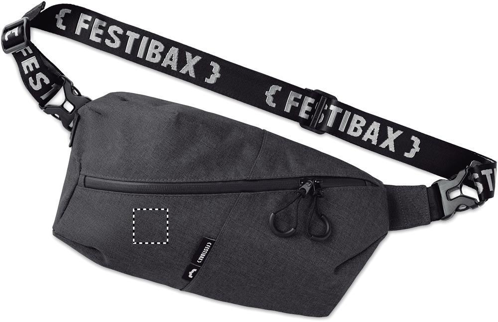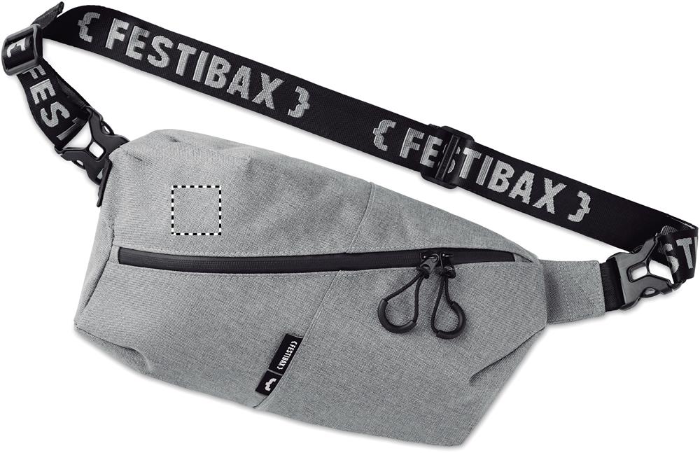 Festibax® Basic 300D 2 sävyinen värjätty polyesteri. Iroitettava ja säädettävä hihna, takana erillinen vetoketjulline tasku.