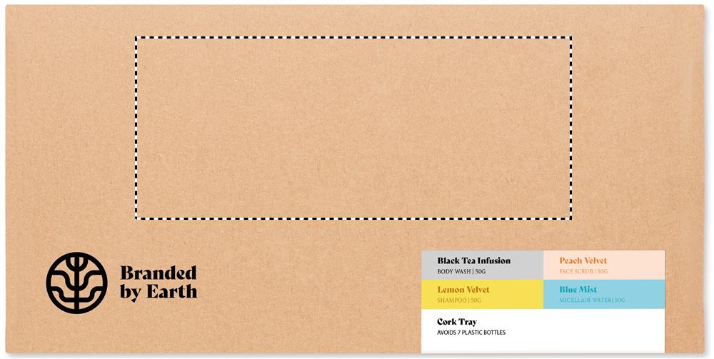 Brandet by earth hoitosetti, sisältää vegaanisen 50gr vartalonpesuaineen, shampoon, kasvojen kuorinnan, kasvoveden ja korkkisen saippuatelineen. Pakattuna pahviseen laatikkoon, valmistusmaa EU.