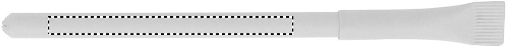 Kuulakärkikynä sinisellä musteella, korkki ja runko valmistettu kierrätetystä paperista.