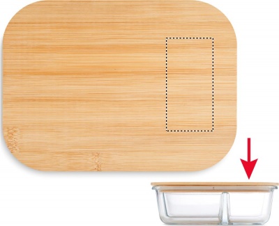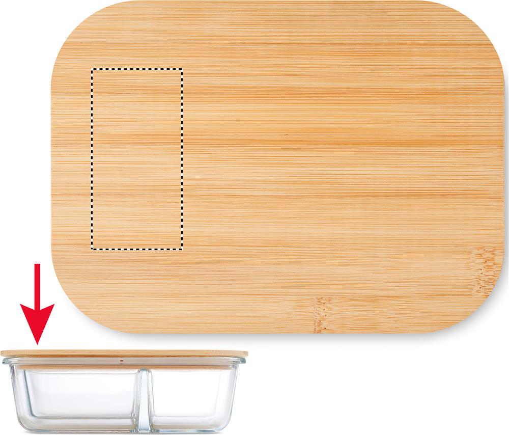 Lounasrasia borosilikaattilasista, jossa 3 lokeroa, bambukansi ja silikoninauha. Tilavuus: 800 ml. Bambu on luonnontuote, värissä ja koossa voi olla pieniä vaihteluita kappalekohtaisesti, mikä voi vaikuttaa lopulliseen merkkaustulokseen.