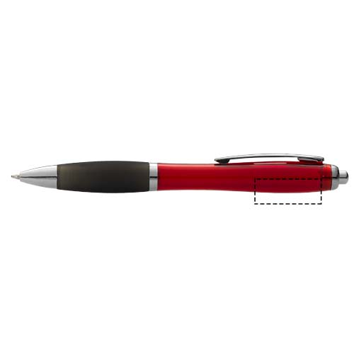 Kuulakärkikynä, jossa on click-toiminto. Pehmeä ote.