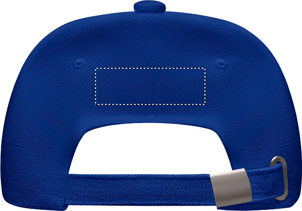 5 panel baseball cap in 250 gr/m² organic brushed cotton with metal adjustable strap back buckle closure.
