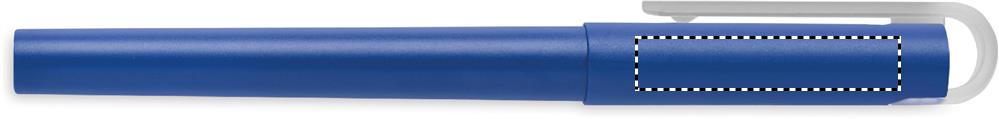 Geelimustekynä, jonka runko on valmistettu RPET materiaalista. Sininen muste.
