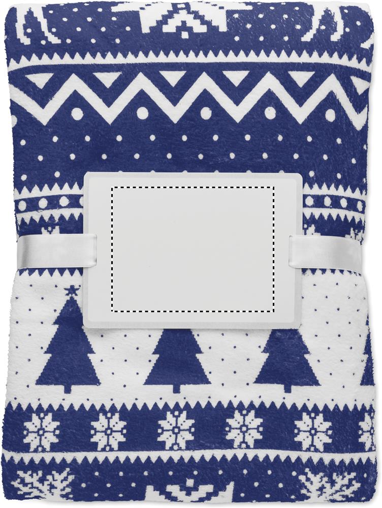 190 gr/m² RPET-korallifleecehuopa, jossa on talvikuvio. Kääritty nauhaan ja tulostettavaan korttiin.
