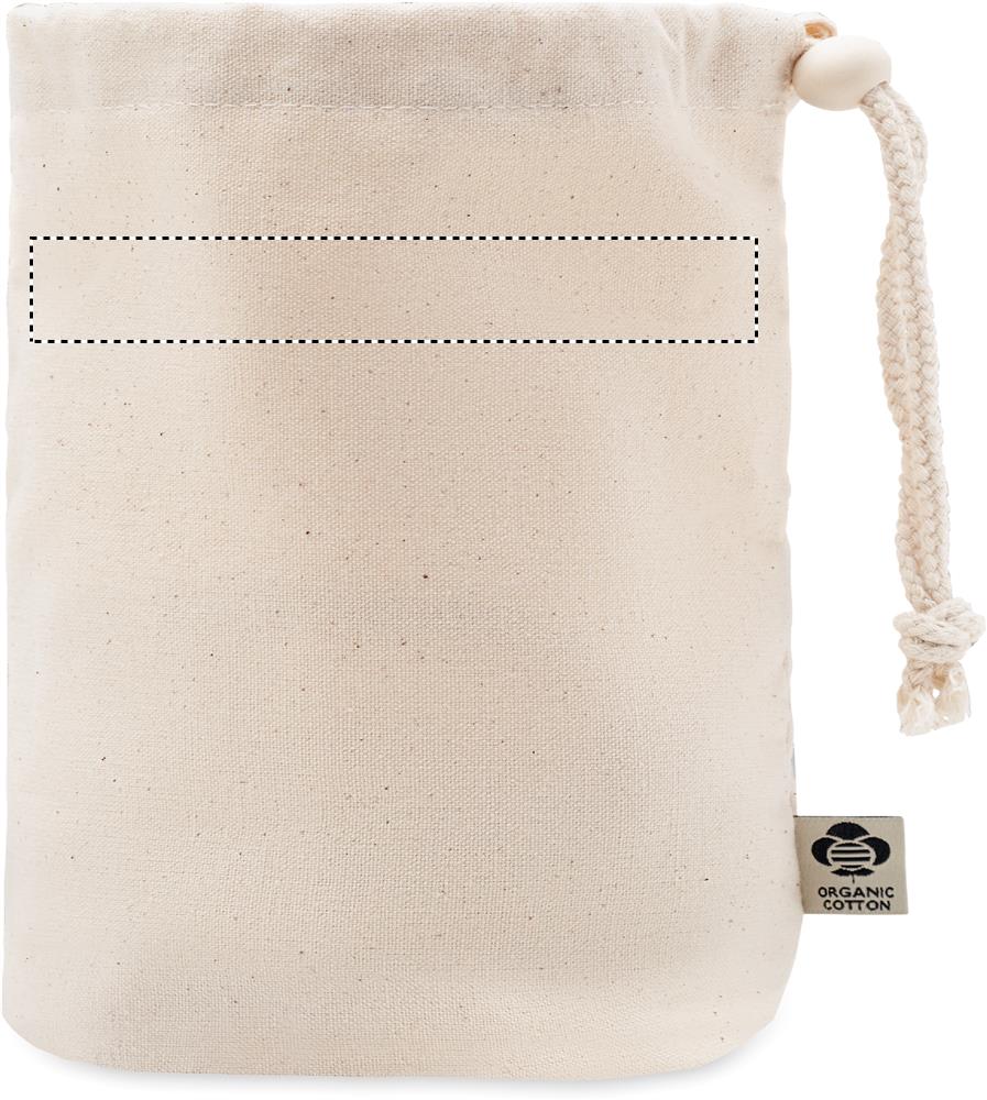 220 gr/m² pieni säilytyspussi orgaanisesta puuvillasta, puisella sulkimella.