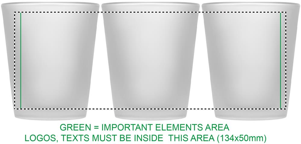 Shotti / snapsi -lasi, jossa on erityinen pinnoite sublimaatiota varten. Tilavuus 44 ml.