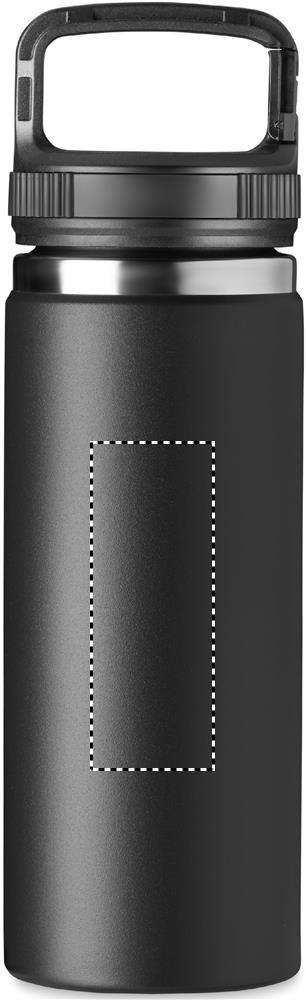 Kaksiseinäinen ruostumattomasta teräksestä valmistettu termospullo, jossa on ripustuslenkki korkissa. Tilavuus 500 ml.