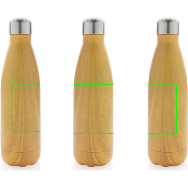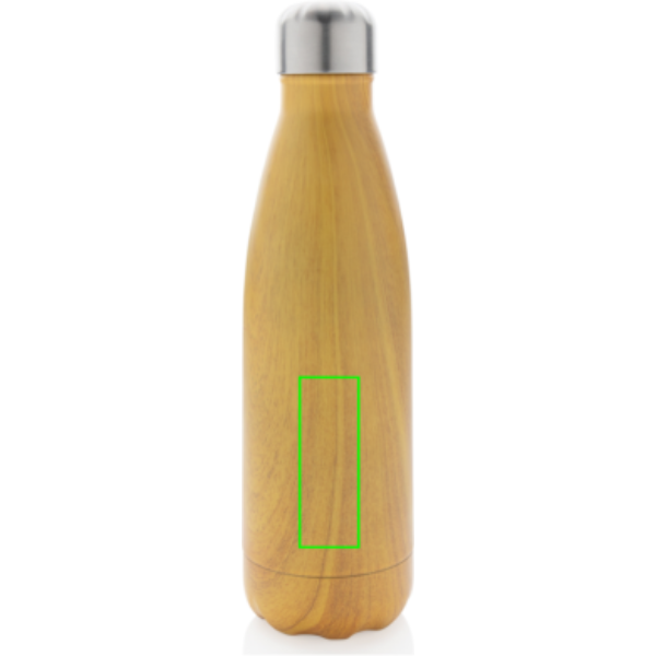 Tyhjiöpullo ruostumattomasta teräksestä puupainatuksella