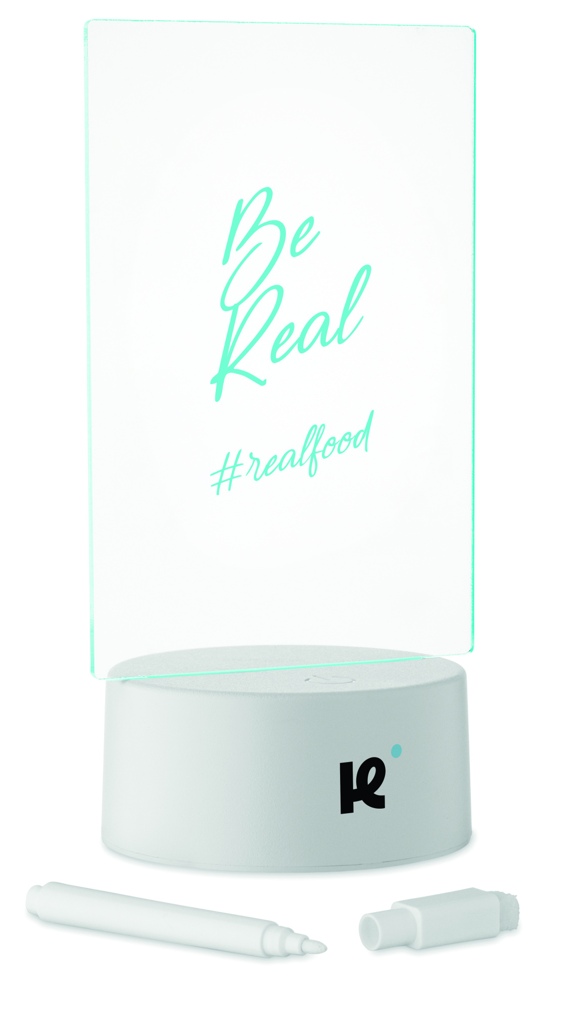 Valaistu LED-muistitaulu, jossa on väriä vaihtava valo ja pyyhittävä valkoinen tussi. Akryylitaulu ja alumiinijalusta. Paristokäyttöinen, vaatii 3 AAA-paristoa (eivät sisälly pakkaukseen).