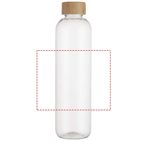 Kierrätysmuovista valmistettu uudelleenkäytettävä vesipullo, jossa on tyylikäs bambukansi. Yksiseinäinen pullo on BPA-vapaa, testattu ja hyväksytty Saksan elintarviketurvallisuuslainsäädännön (LFGB) mukaisesti. Testattu ja hyväksytty ftalaattipitoisuuden suhteen REACH-määräysten mukaisesti. Bambu on peräisin luontoa säästävistä, sosiaalisesti ja ympäristön kannalta vastuullisista lähteistä. Tilavuus on 950 ml. Suositellaan pestäväksi käsin. Toimitetaan kierrätetystä kartongista valmistetussa lahjapakkauksessa.