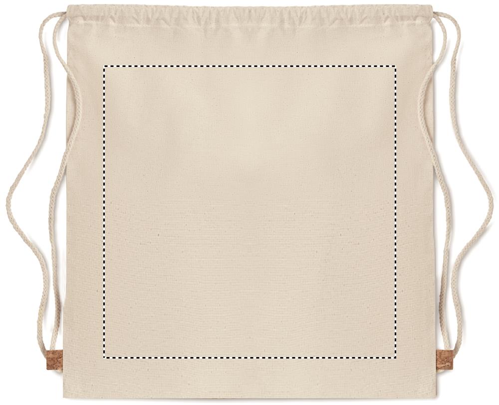 Ruoželinis medvilninis užtraukiamas maišelis su kamščio detale. 160 gr/m². Kamštiena yra natūrali medžiaga, dėl savo struktūrinio pobūdžio ir paviršiaus poringumo galutinis spaudos rezultatas kiekvienam gaminiui gali turėti nukrypimų.
