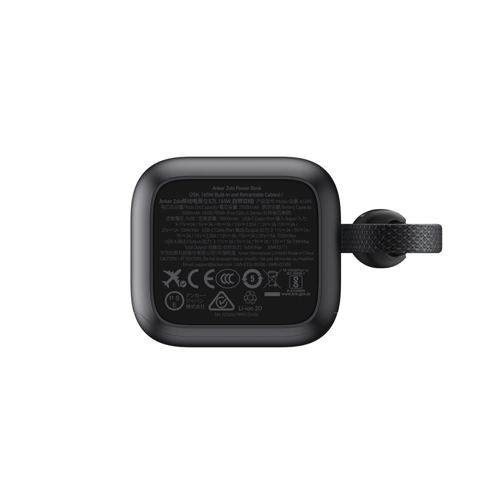 Logotrade reklaminės dovanos nuotrauka: „Anker“ išorinė baterija 25 000 mAh 165 W, įmontuotas ištraukiamas laidas