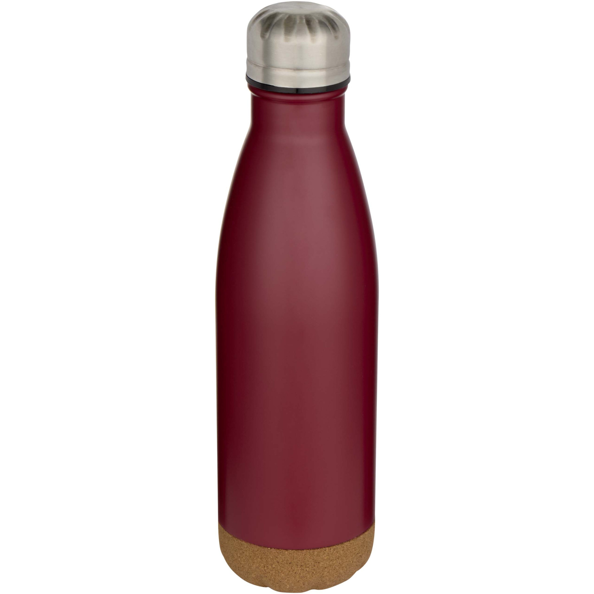 Logotrade reklaminiai produktai nuotrauka: „Cove“ 500 ml talpos dvigubos sienelės vakuuminiu būdu izoliuotas nerūdijančio plieno vandens butelis su kamštinėmis detalėmis