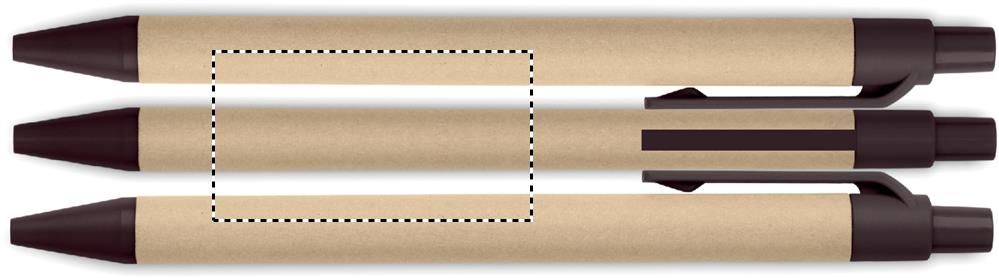 Popierinis rutulinis rašiklis su mygtuku, kurio dalys pagamintos iš 40% kavos lukšto ir 60% ABS. Mėlynas rašalas.