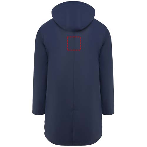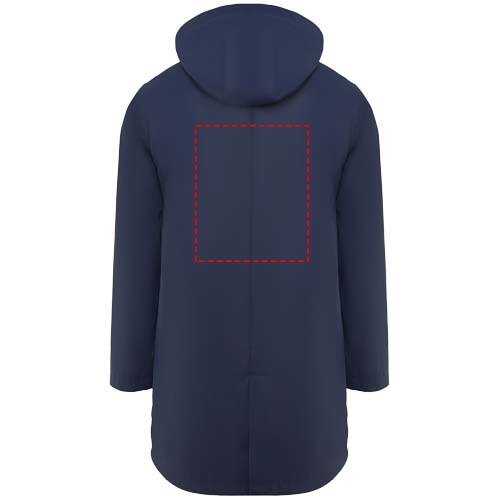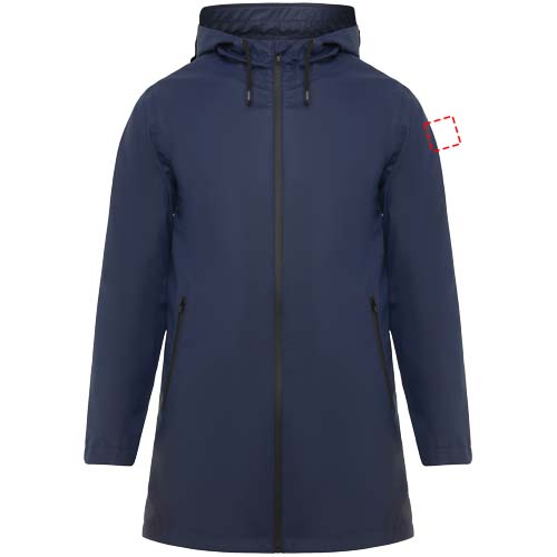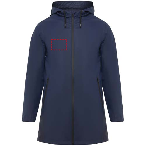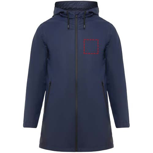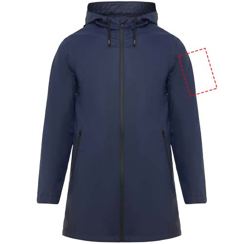 Neperšlampamas lietpaltis. Gaubtas su smaigaliu. Termiškai sandarinami užtrauktukai ir siūlės. Juodos spalvos kontrastingos detalės. Dvi šoninės kišenės su užtrauktuku. Skeltukas nugaroje. Nuimama etiketė. Atsparus vandeniui. Modelis yra 185 cm ūgio ir dėvi M dydį.